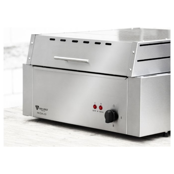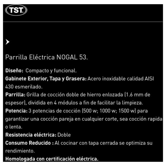 Gabinete exterior acero inoxidable . Parrilla doble enrejado enlozada . Diseo compacto y funcional . Resistencia electrica doble . Potencia 3 niveles 500 w 1000 w 1500 w