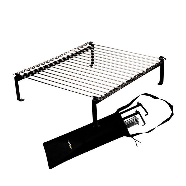 Parrilla portátil construida en acero y en hierro de alta resistencia.