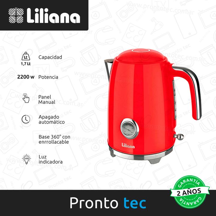 La pava eléctrica Liliana Retrostyle cuenta con un diseño vintage y tecnología moderna. Mezclando estilo y funcionalidad, esta pava de acero inoxidable con termómetro es perfecta para preparar té, café o mate en segundos. Es resistente, duradera y fácil de limpiar, y con una capacidad de 1,7 litros ...
