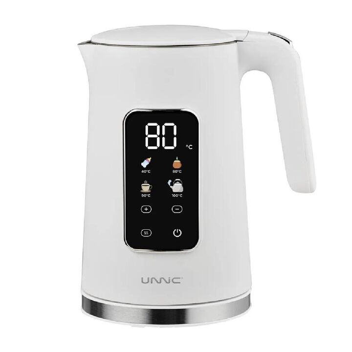 Descripción : La pava eléctrica Unnic Kettle03 combina diseño moderno, precisión y seguridad para que disfrutes tus infusiones con la temperatura ideal. Su pantalla LED táctil permite seleccionar fácilmente entre cuatro opciones preconfiguradas : 40 °C para leche de fórmula, 80 °C para mate, 90 °C p...