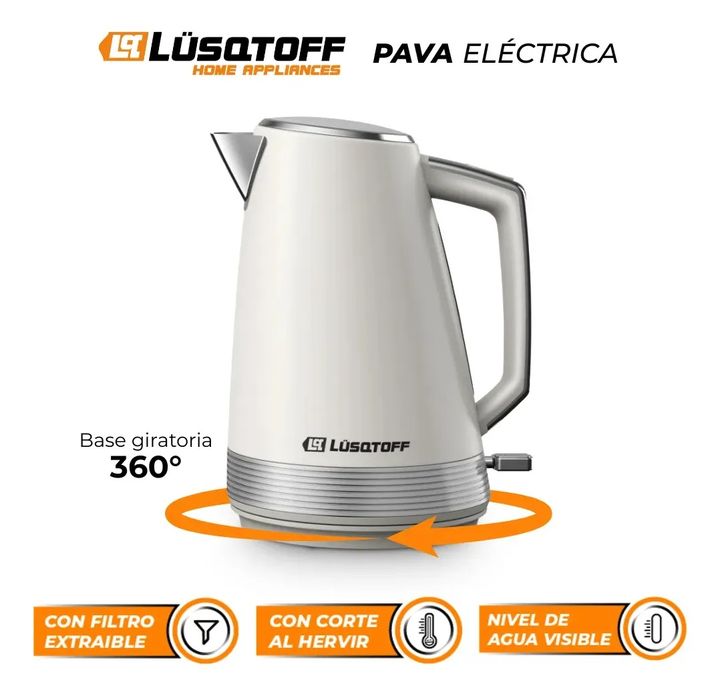 PAVA ELECTRICA LUSQTOFF 1,7 LTS. LQ-PV804 2200W CORTE AUTO Su exclusivo diseño, elegante y moderno se adapta perfectamente a cualquier estilo de cocina, mientras que su material de acero inoxidable garantiza durabilidad y resistencia al uso diario La resistencia oculta y el filtro de pico extraíble,...