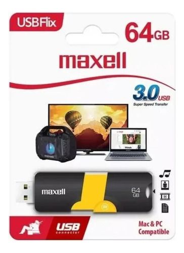 Pendrive USB Maxell USB FLIX 64gb USB 3.2 CARACTERÍSTICAS: • Memoria USB Flix, diseño retráctil sin tapa • Capacidad: 64gb • Rápida transferencia de datos y contenidos • Para uso general o diario en el trabajo, la escuela, el hogar y los viajes para fotos, música, videos, presentaciones, transferenc...