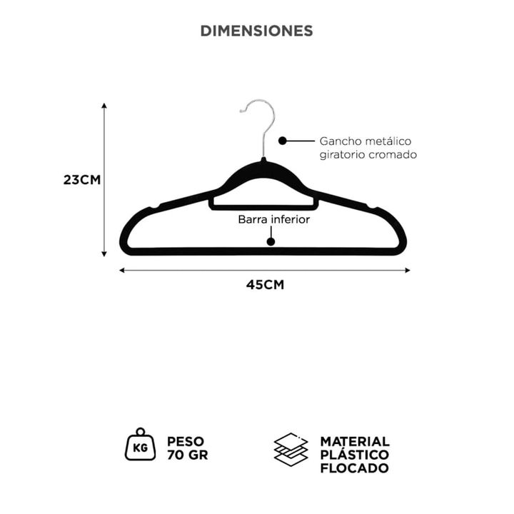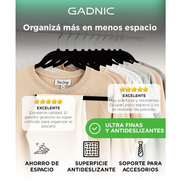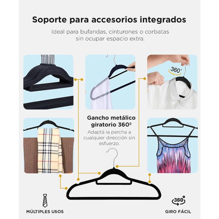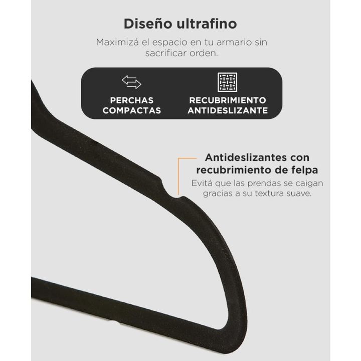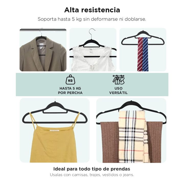 Diseño ultrafino para máximo espacio: Aprovechá cada centímetro de tu armario con perchas compactas que evitan el desorden y duplican tu capacidad de guardado. Recubrimiento antideslizante de felpa: Tus prendas se mantienen en su lugar gracias a la superficie flocada que evita deslizamientos, inclus...