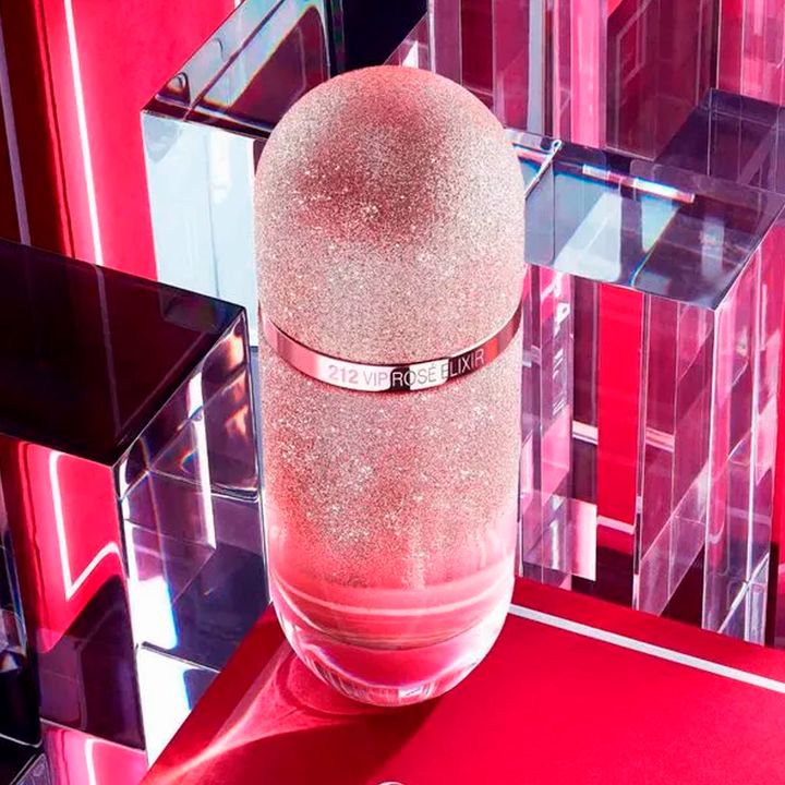 El 212 VIP Rosé Elixir parece ser una interpretación intensa y sensual de su predecesor, el 212 VIP Rosé, con un frasco que refleja su esencia en un hermoso degradado de purpurina rosa. La descripción evoca sentimientos de alegría, libertad y feminidad, sugiriendo que esta fragancia es una invitació...