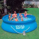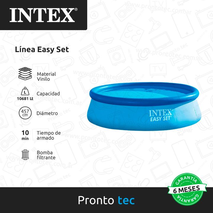 Las piletas Intex de la línea Easy set unen tecnología de materiales y un diseño práctico y cómodo para todos. Sin necesidad de una estructura metálica, te permite montar tu pileta de forma muy simple y rápida, simplemente vas a tener que extenderla en una superficie plana e inflar el aro superior. ...
