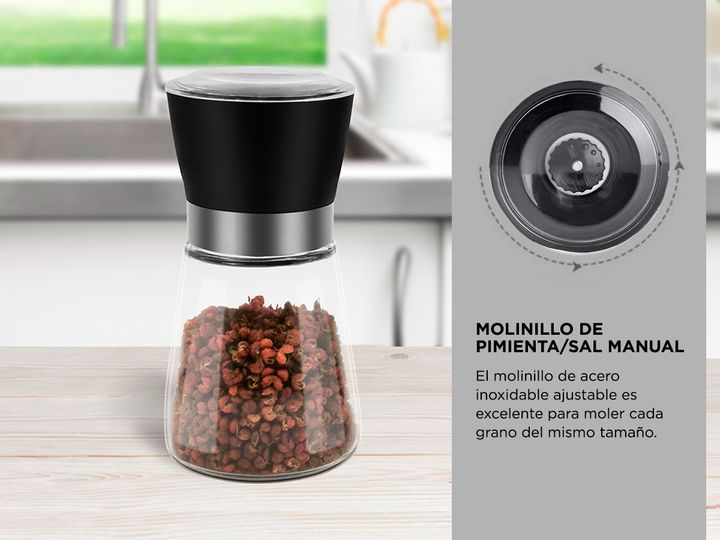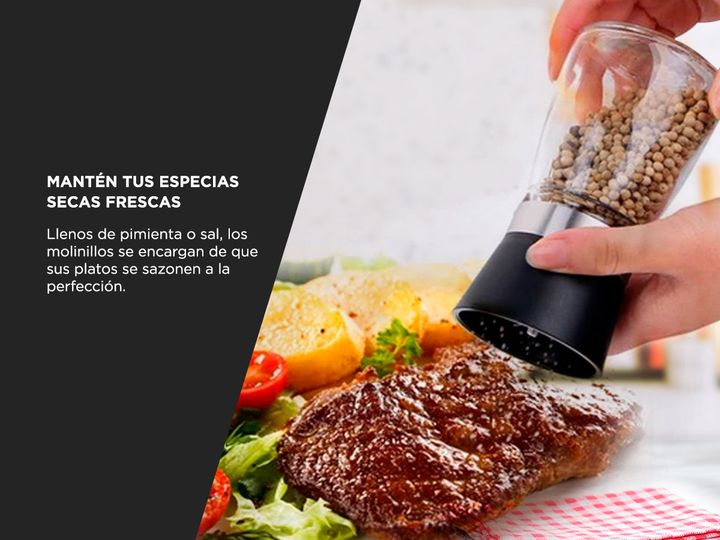 ¡Nuevo Molinillo de pimienta/sal Gadnic! Llenos de pimienta o sal, los molinillos se encargan de que sus platos se sazonen a la perfección. El molinillo de acero inoxidable ajustable es excelente para moler cada grano del mismo tamaño. Especificaciones Molinillo de pimienta/sal manual Tamaño del pro...