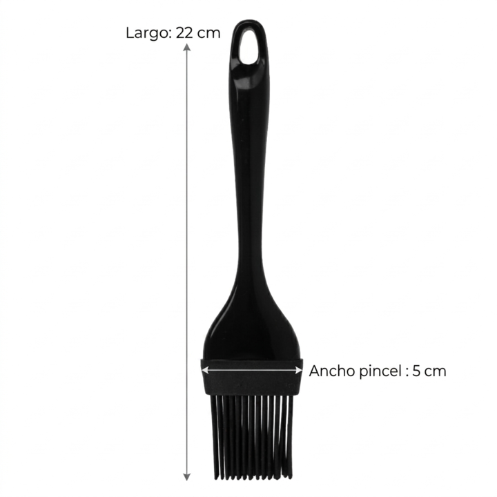 Pincel de silicona 22 cm Negro Mango de Plastico Medida : Ancho pincel : 5 cm Largo: 22 cm Libre de BPA Aprobado por Instituto Nacional de Alimentos (INAL). ANMAT Aston Resiste -40º a 200º C Apta para Microondas Apta lavavajillas Orificio para colgar Ideal para repostería y gastronomía