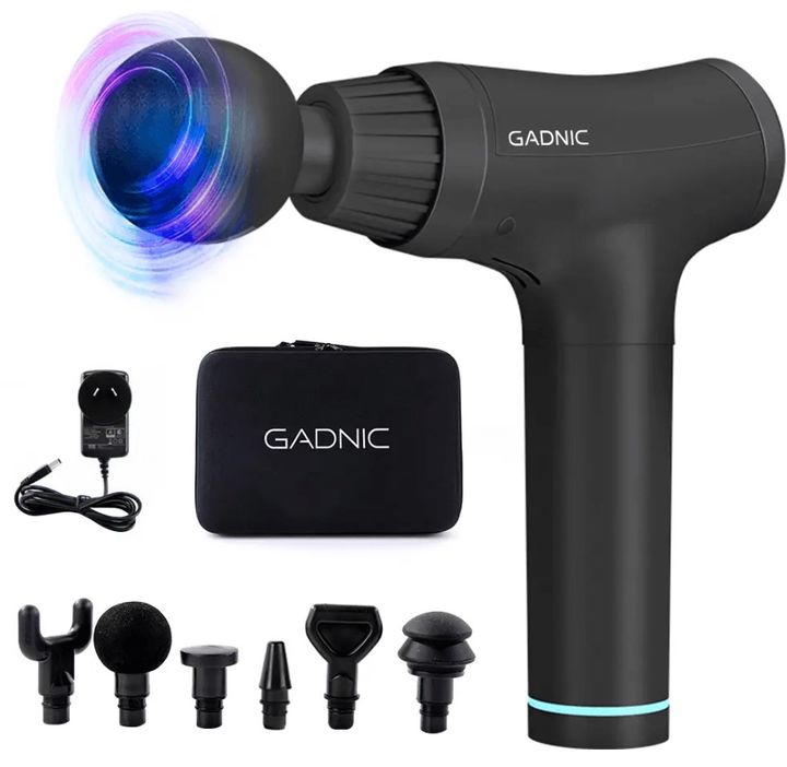 Esta pistola cuenta con 6 velocidades ajustables para satisfacer las necesidades de relajacion muscular 6 cabezales de masaje para diferentes partes del cuerpo puede ajustar la intensidad de acuerdo con diferentes partes del cuerpo y diferentes usos y cambiar las necesidades del cabezal de masaje.Pi...