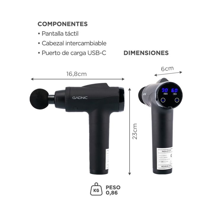 Gadnic presenta la nueva Pistola Masajeadora Múscular: Tecnología de Percusión Avanzada: Equipado con un potente motor, esta pistola masajeadora ofrece una acción de percusión profunda que penetra en los tejidos musculares para aliviar la rigidez y mejorar la flexibilidad. Múltiples Cabezales de Mas...