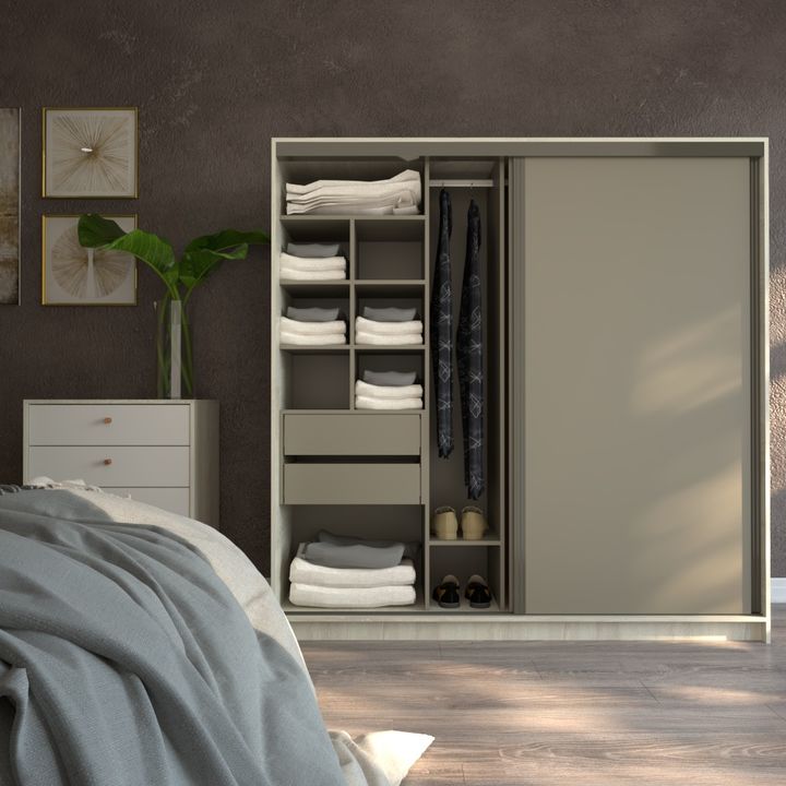 Placard Corredizo 1,80 2 Cajones Nevado Gris