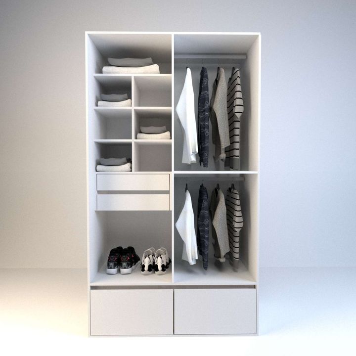 Interior y puerta del mismo color Cantidad de puertas: 4 Cantidad de cajones Interiores: 2 Cantidad de cajones Exteriores: 2 Cajones exteriores de gran capacidad | zapateros con fondos de 15mm. Cantidad de estantes: 7 Interior boxes Manijas metalicas cobre vintage Soporte para percha metalico Corred...