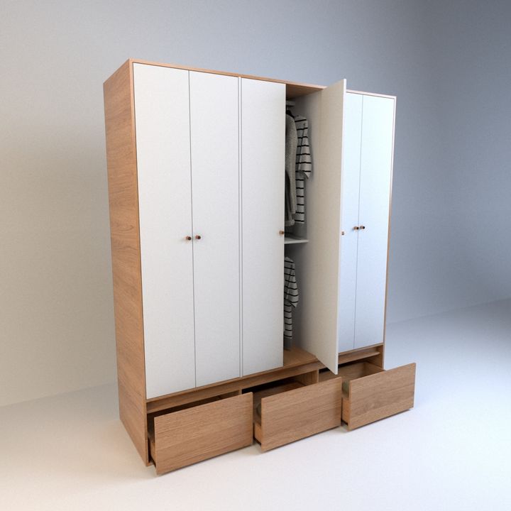 Interior y puerta del mismo color Cantidad de puertas: 6 Cantidad de cajones Interiores: 4 Cantidad de cajones Exteriores: 3 Cajones exteriores de gran capacidad | zapateros con fondos de 15mm. Cantidad de estantes: 14 Interior boxes Manijas metalicas cobre vintage Correderas metálicas Bisagras metá...