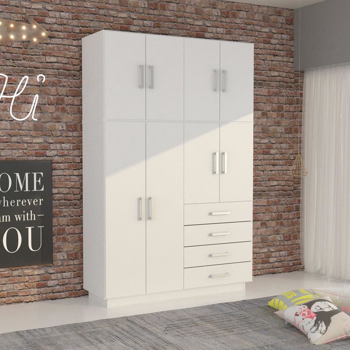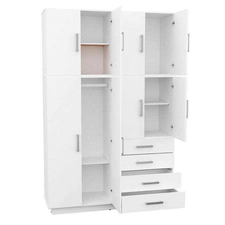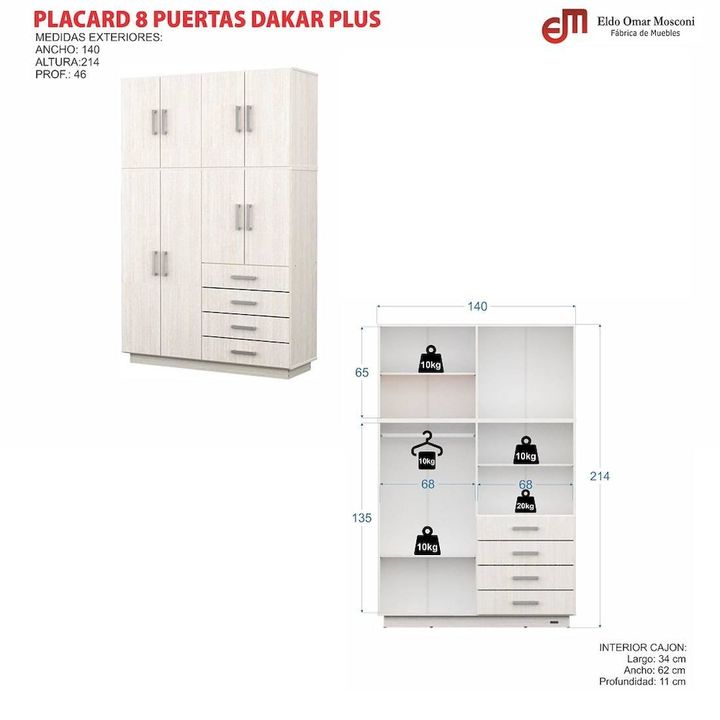 PLACARD MOSCONI ROPERO 8 PUERTAS 4 CAJONES CON BAULERA DAKAR 56599 COLOR BLANCO