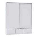 2 PUERTAS, 3 CAJONES EXTERNOS, INTERIORREVESTIDO, CORREDERAS METALICAS,PERFILERIA DE ALUMINIO.