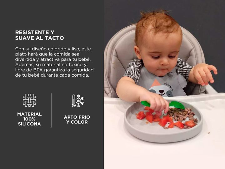 Plato de Comida de Silicona Gris Gadnic BEBE65 Para Bebés