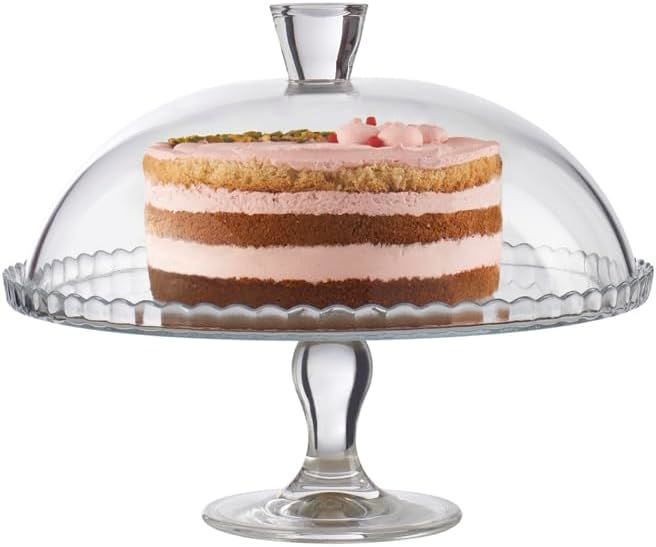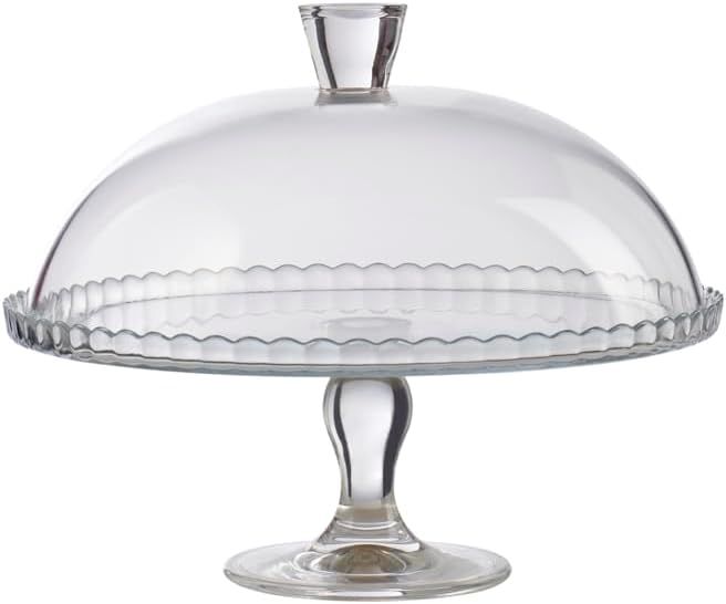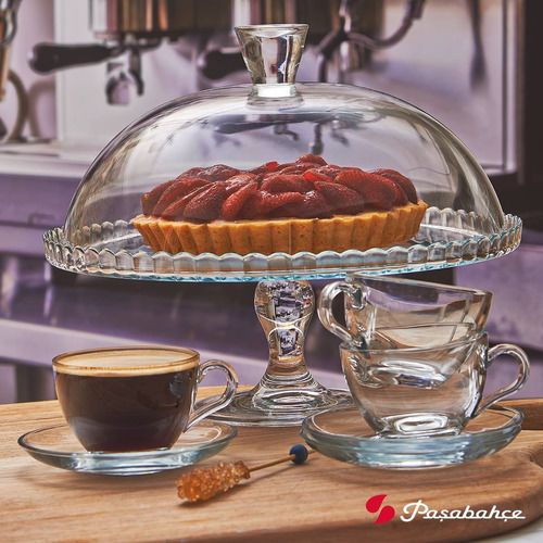 Plato para muffins, tortas, alfajorcitos, etc ... Decora, alegra y viste la mesa. El pie con la altura le da volumen. Todo en vidrio , fino y resistente. ideal para todo tipo de mesa. Diametro : 32 cms. Altura total : 12 cms. (sin la campana) Altura con campana 26,2 cms. Mas la campana PASABAHCE