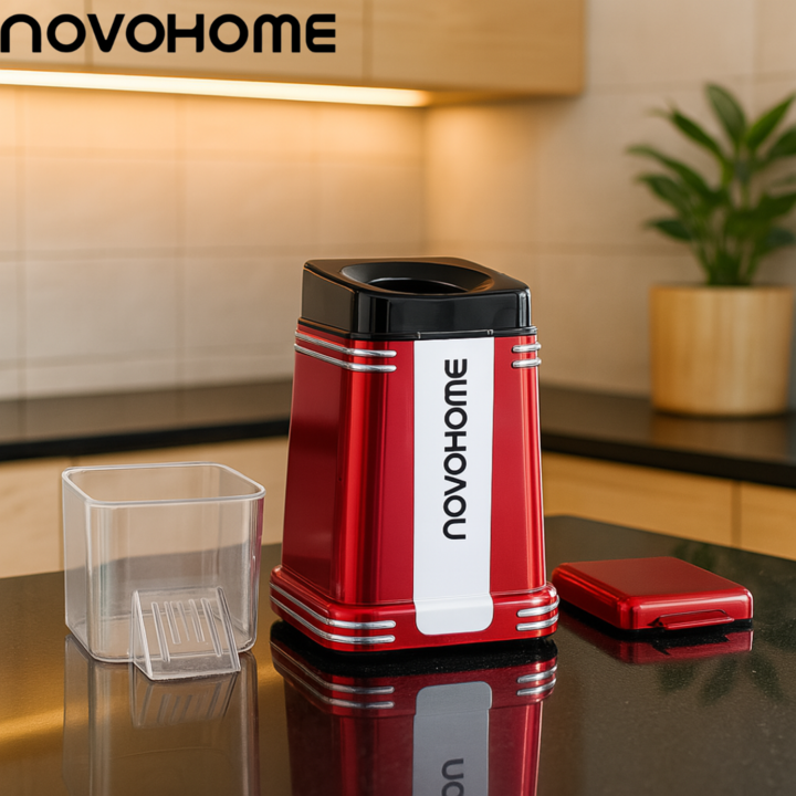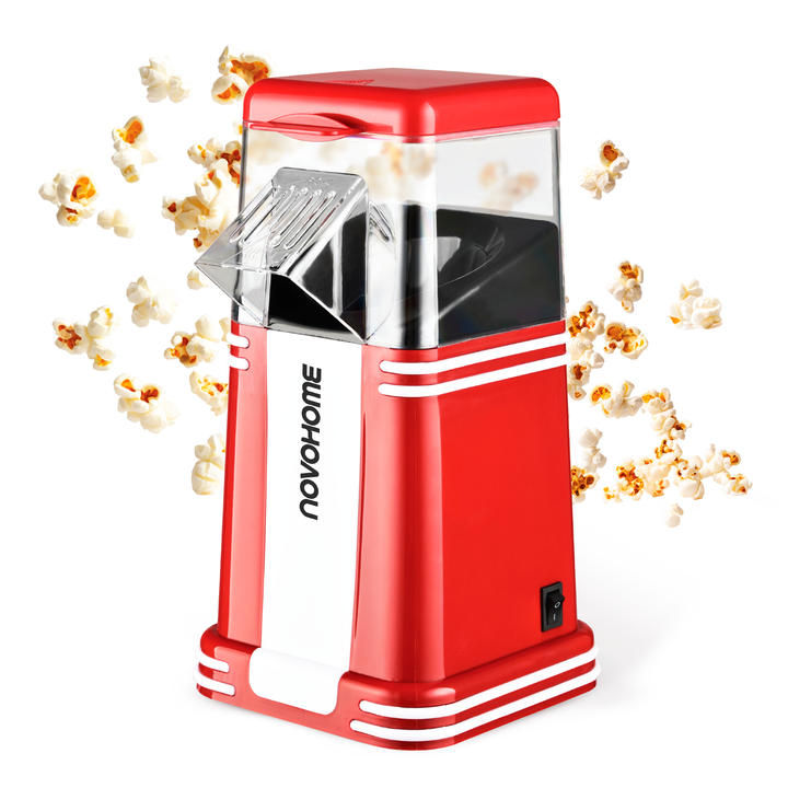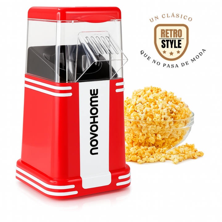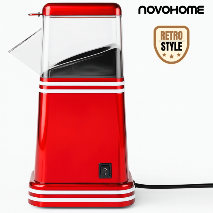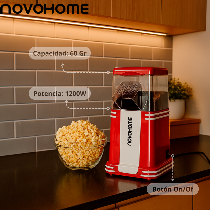 NOVOHOME POPCORN MAKER 1200W 40-60G SKU: NH-PM030 POCHOCLOS CON ENCANTO RETRO Revive la magia de la nostalgia con la máquina de hacer pochoclo Novohome que combina el encanto retro con la tecnología moderna. Su funcionamiento simple transforma cualquier momento en una experiencia clásica llena de sa...