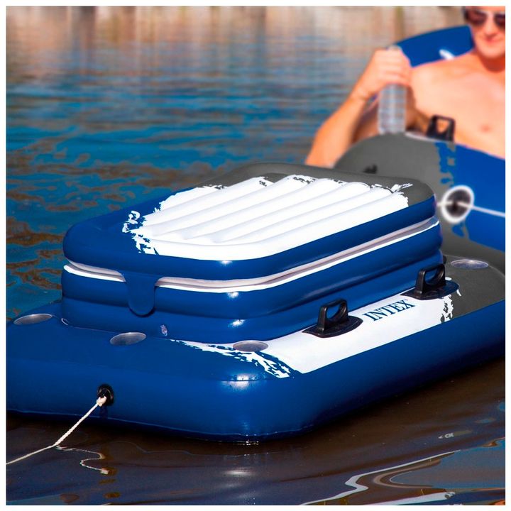 La conservadora inflable y flotante de Intex cuenta con una capacidad de hasta 72 latas. Incluye 6 posavasos incorporados y una tapa desmontable. Con 3 cámaras de aire para mayor resistencia y 4 asas resistentes para que puedas transportarla mucho más fácilmente. Fabricada en vinilo resistente, adem...