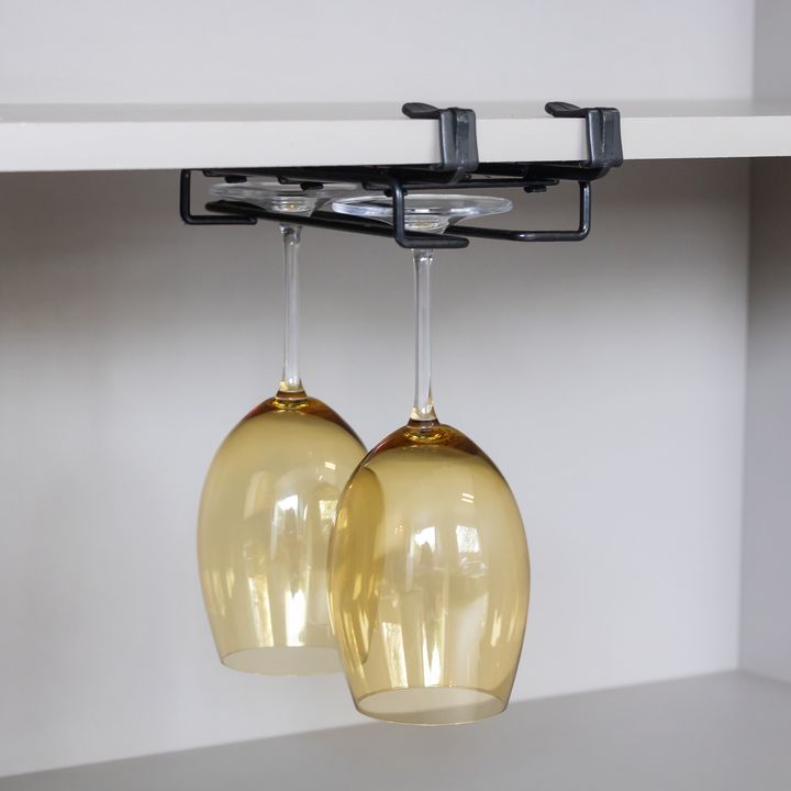 Organizador de metal para colgar hasta 3 vasos o copas y transformar la organización y decoración de tu cocina, así como de otros ambientes. Mantén los vasos a tu alcance con este portavasos y aprovecha cada rincón del mueble o estantería de tu cocina. Dentro del mueble de la cocina, utiliza el port...