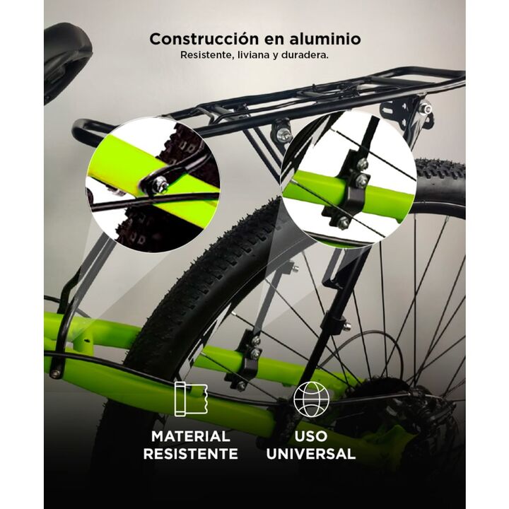 Ideal para bicicletas de 24 a 27 pulgadas. Este soporte es perfecto para llevar tus pertenencias de manera segura y cómoda en cada paseo. Fabricado con materiales de alta resistencia, soporta peso sin comprometer la estabilidad de la bicicleta. Especificaciones Modelo universal Compatible con todos ...
