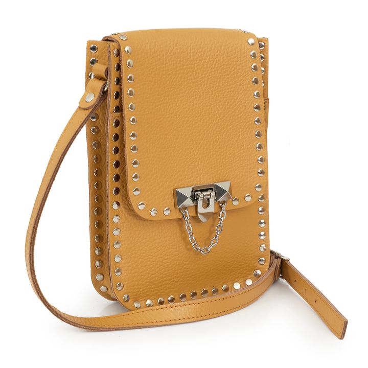 Portacelulares Capra fabricados con cuero negro de primera calidad. Cuenta con un bolsillo principal con solapa y herraje metálico, un bolsillo trasero con cierre, un bolsillo exterior delantero y correa regulable. Lleva tu celular y lo indispensable con vos de manera práctica y segura!