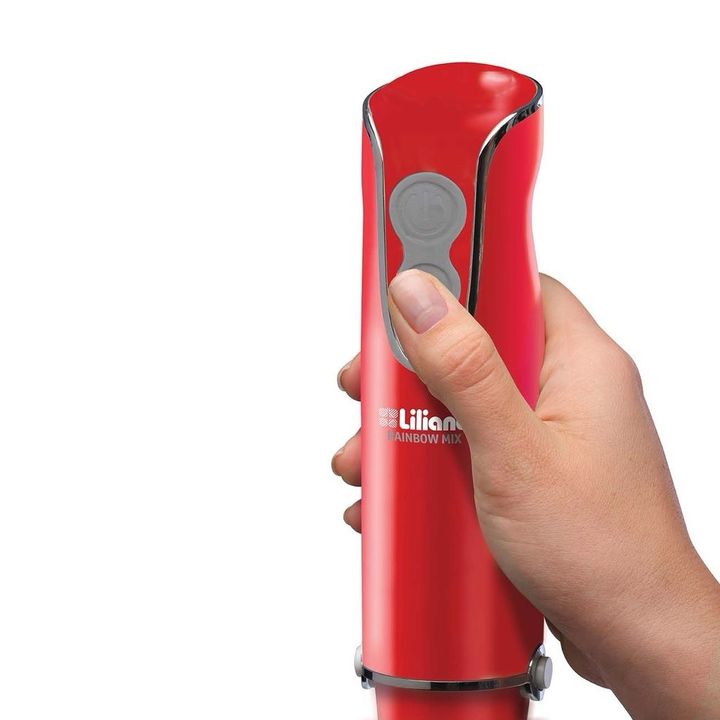 Mixer Liliana Rainbow Mix AH102R Ideal para preparar salsas, licuados, puré, dips, cremas y sopas. · Varilla licuadora y emulsionadora de acero inoxidable. · Vaso medidor de 600cm³. · 2 velocidades. · Potencia: 450 watts. Garantías 12 meses