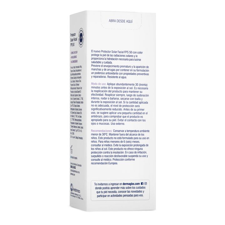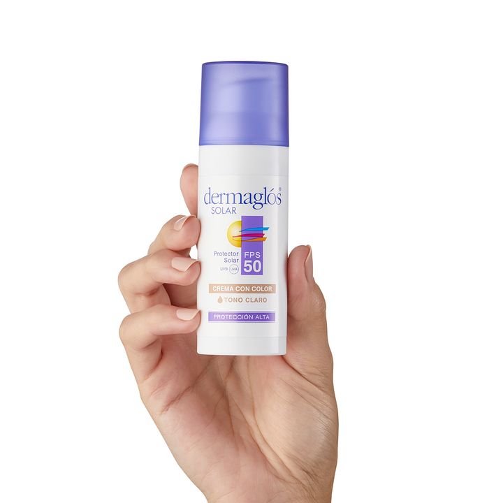 Protector Solar Dermaglos Facial Fps50 Crema Tono Claro 50G Fórmula innovadora para el cuidado del rostro: Previene la aparición de manchas y arrugas Crema con color Oftalmológicamente testeado Resistente al agua Recomendado para adultos Libre de gluten, apto para celíacos* *Estudio de Determinación...