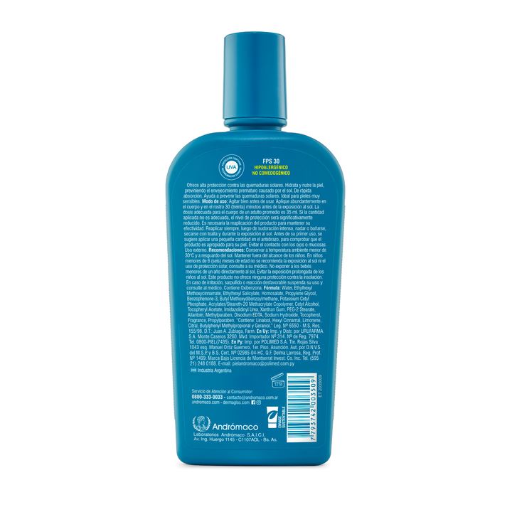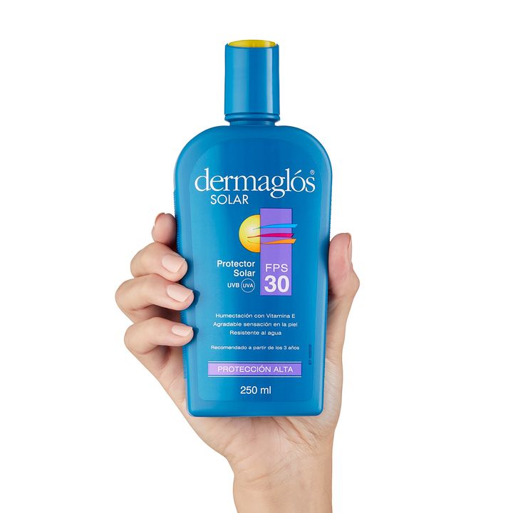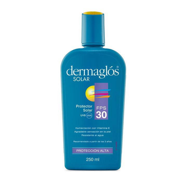 Protector Solar Dermaglos Fps 30 Emulsion X 250 Ml PROTECTOR SOLAR con FPS 30 Protege tu piel y todo lo que hacés bajo el sol. Ofrece alta protección contra las quemaduras solares. Hidrata y nutre la piel, previniendo el envejecimiento prematuro causado por el sol. De rápida absorción. Ayuda a preve...