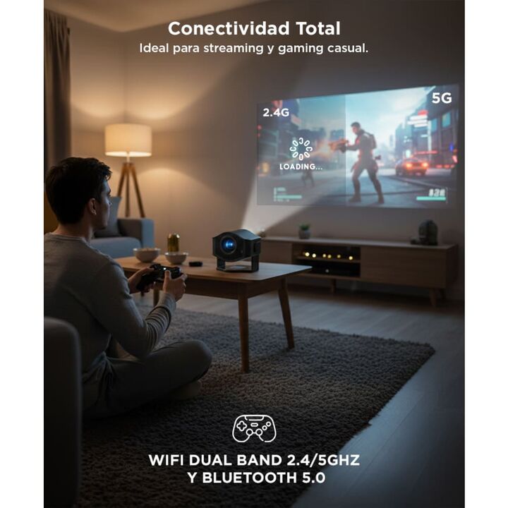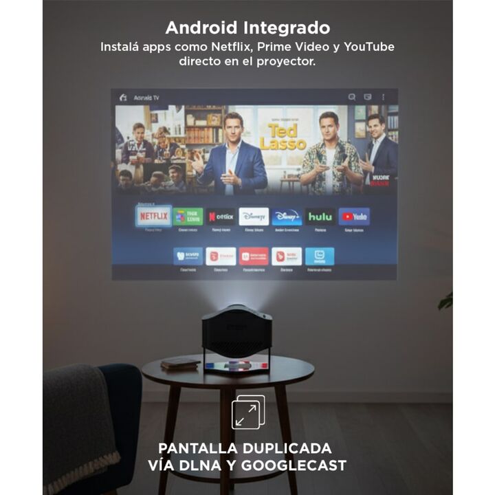 Transformá tu espacio en un cine con el proyector Gadnic PROJ201W Compacto, liviano y potente, este proyector ofrece imagen de hasta 130” con resolución HD, conexión WiFi, Bluetooth y un sistema Android incorporado para que disfrutes tus apps favoritas sin necesidad de otros dispositivos. Transmití ...