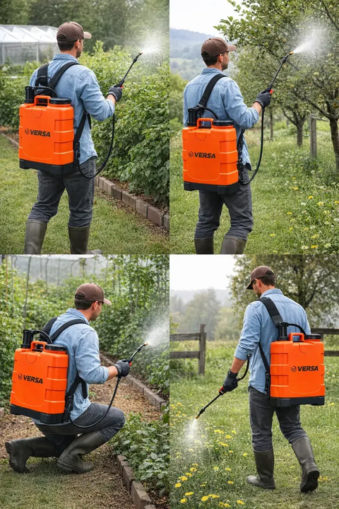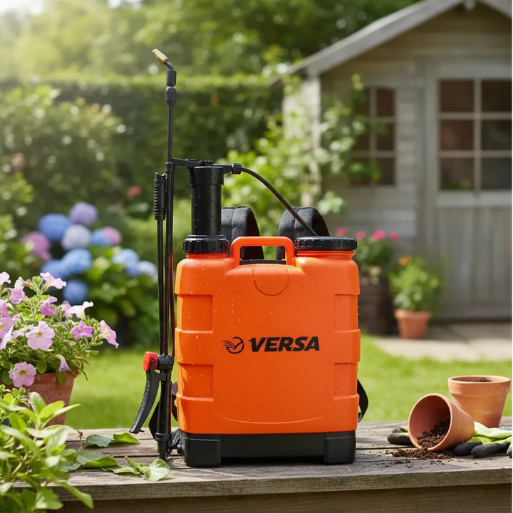 PULVERIZADOR FUMIGADOR MANUAL TIPO MOCHILA 20 LITROS VERSA N105 Pulverizador de mochila con capacidad de 20 litros, diseñado para aplicaciones en jardinería, mantenimiento y control de plagas. • Sistema manual con lanza y boquilla regulable. • Producto orientado a viveros, ferreterías y casas de agr...