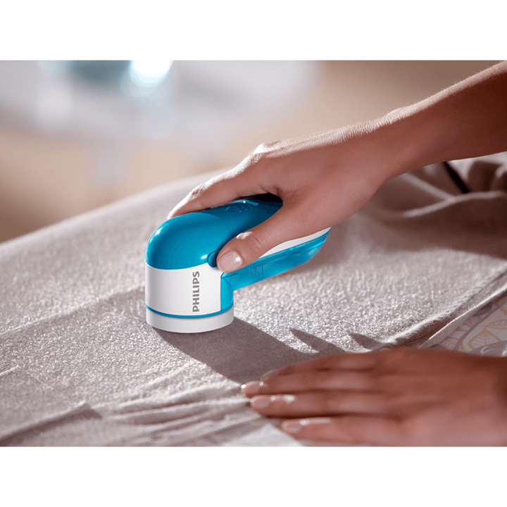 El quitapelusas eléctrico de Philips le permite eliminar fácilmente y rápidamente las pelusas de tela de todo tipo de prendas. Todas sus prendas, ya sea su suéter o su manta, ¡se verán como nuevas nuevamente! Gran superficie de la hoja La gran superficie de la hoja garantiza que se cubra un área más...