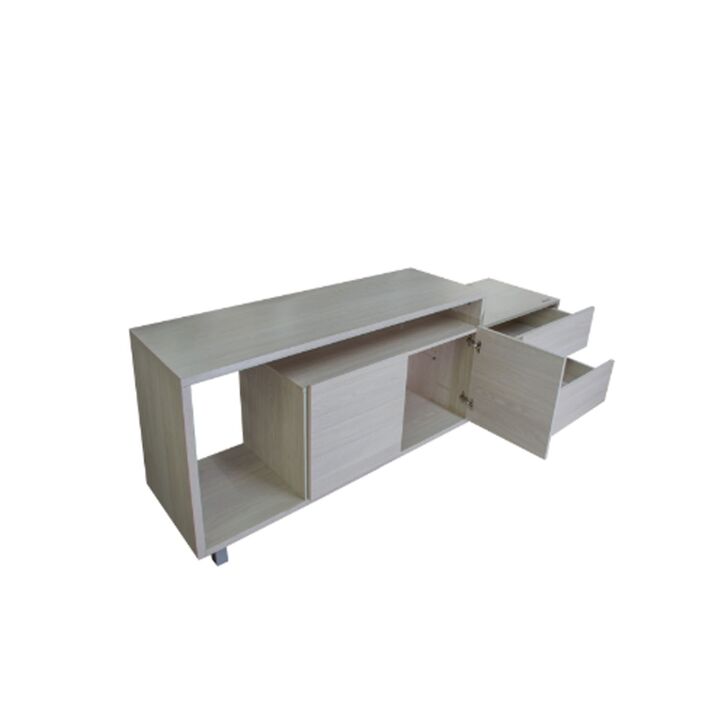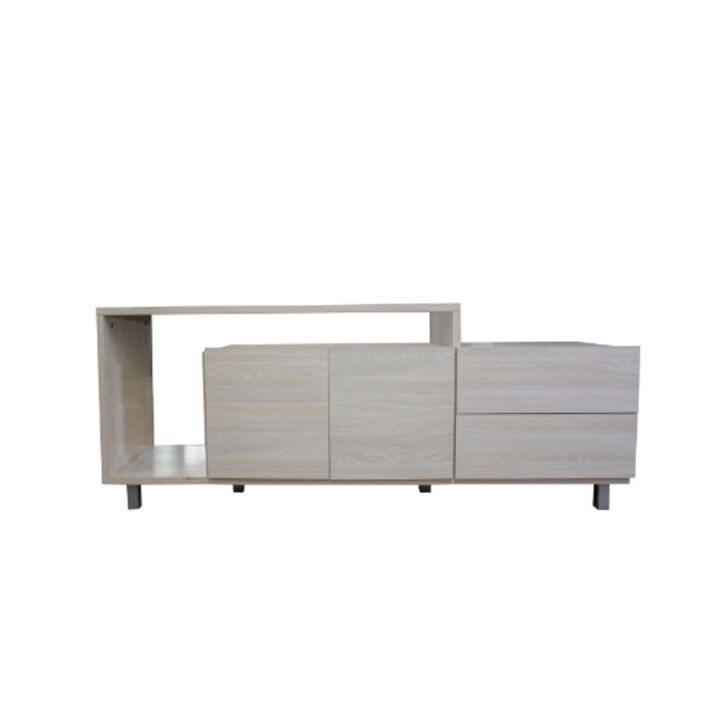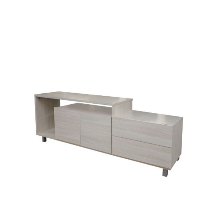 Rack para tv de melamina. Dos puertas con estante interno. Dos cajones con correderas metálicas. Patas de pvc. Color Gris Andino. Medidas: Ancho: 1.78 mts. Alto: 0.67 mts. Profundidad: 0.45 mts. Producto seleccionado para venta y entrega “EN CAJA”.