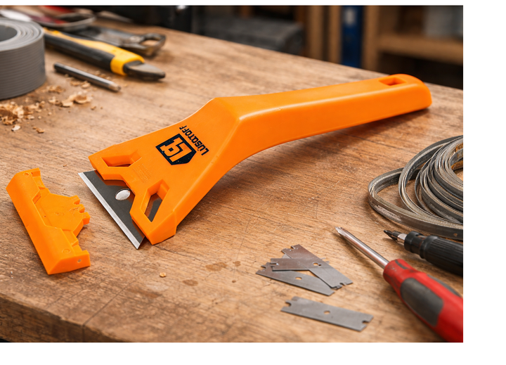 ESPÁTULA RASPADOR REMOVEDOR DE 2 3/8 LÜSQTOFF L7200 CON NAVAJA DE ACERO • Apto para remover pintura, pegamento, silicona y cemento. • Incluye una hoja de acero al carbono 60 (C60). • Ancho de hoja de 2 y 3/8 (6 cm). Garantía 6 meses