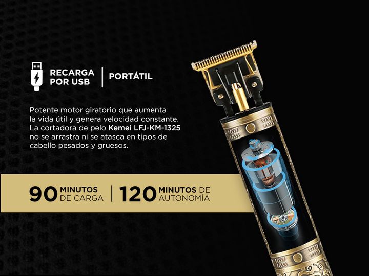 Versátil y práctica, la Kemei LFJ-KM-1325 es una afeitadora y cortadora de pelo y barba que incluye 3 adaptadores para adaptarse a diferentes estilos y longitudes. Su diseño ergonómico facilita el agarre, permitiendo un control total durante el uso. Equipado con cuchillas en T de acero de alta preci...