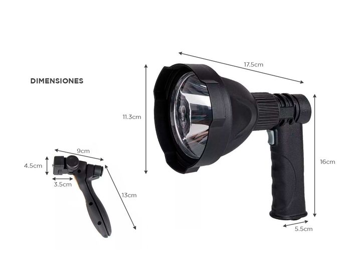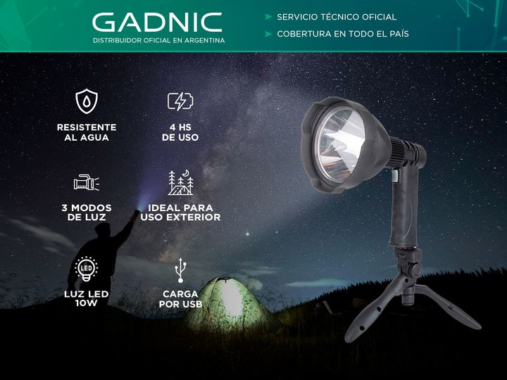Nueva Linterna Buscahuellas Gadnic de Mano + Tripode Un reflector portátil buscahuellas impermeable es una herramienta indispensable para cualquier persona que necesite una fuente de luz confiable en entornos al aire libre o bajo condiciones climáticas adversas. Este tipo de reflector es ideal para ...