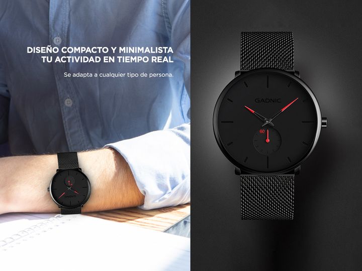 ¡Gadnic presenta su nueva línea de relojes minimalistas de alta calidad! Este clásico y sencillo reloj de pulsera para será ideal para cualquier ocasión. Su diseño compacto y minimalista lo hacen el más vendido del mercado. La correa mallada regulable de acero inoxidable logra una adaptación a cualq...
