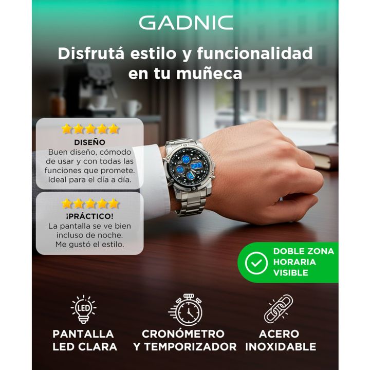 ¡Nuevo Reloj Acero RM70F23 By Gadnic! Sus múltiples funciones lo convierten en un reloj ideal para el día a día o para usar en alguna ocasión especial, su configuración es muy sencilla y su diseño es liviano y ergonómico. Por la tecnología waterproof podrás llevarlo sin preocuparte Es ideal para qui...