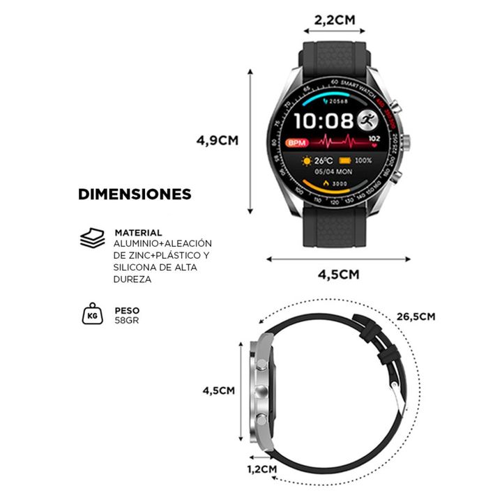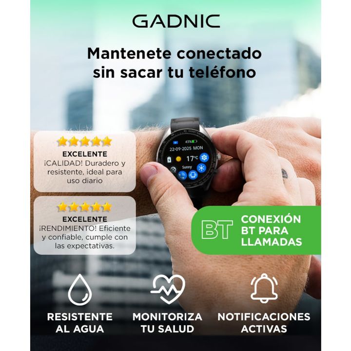El Smartwatch Gadnic combina estilo, tecnología y funcionalidad en un solo dispositivo. Diseñado para adaptarse a tu ritmo de vida, este reloj te permite estar conectado, monitorear tu salud y mantener un registro de tus actividades diarias con total comodidad. Con su resistencia al agua IP67, panta...