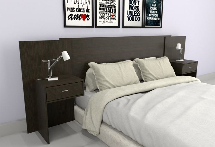 Medidas: Largo 1,40 | 1,60 m - Alto 1,10 m - Profundidad: 0,39 m Cantidad de Mesas de luz: 2 Cantidad de Cajones: 1 por mesa de luz Sistema Minifix- guias metalicas metálicas Manija de aluminio anodizada Melamina de alta resistencia Peso: 41 Kg. Diseño exclusivo de la empresa INCLUYE: RESPALDO Y DOS...