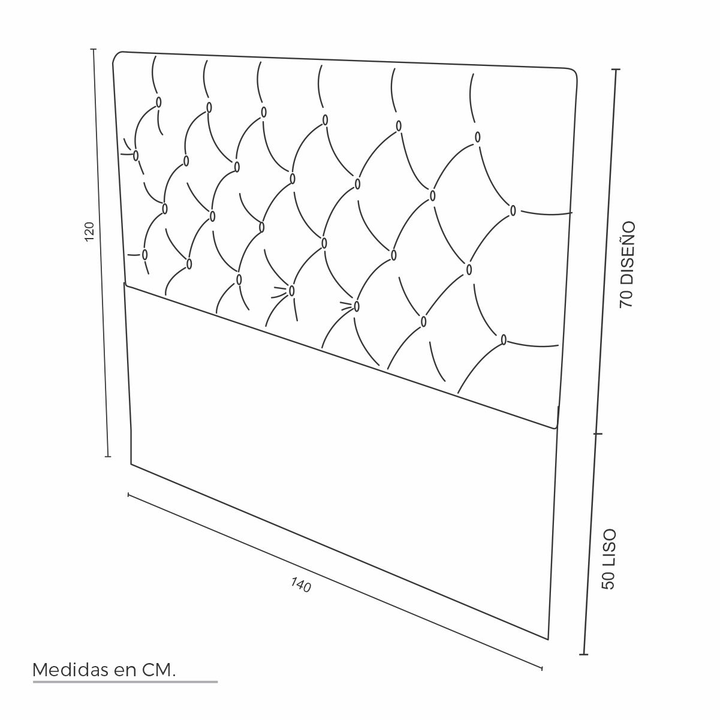 Respaldo de cama 2 plazas (140x120 cm)modelo capitone azul