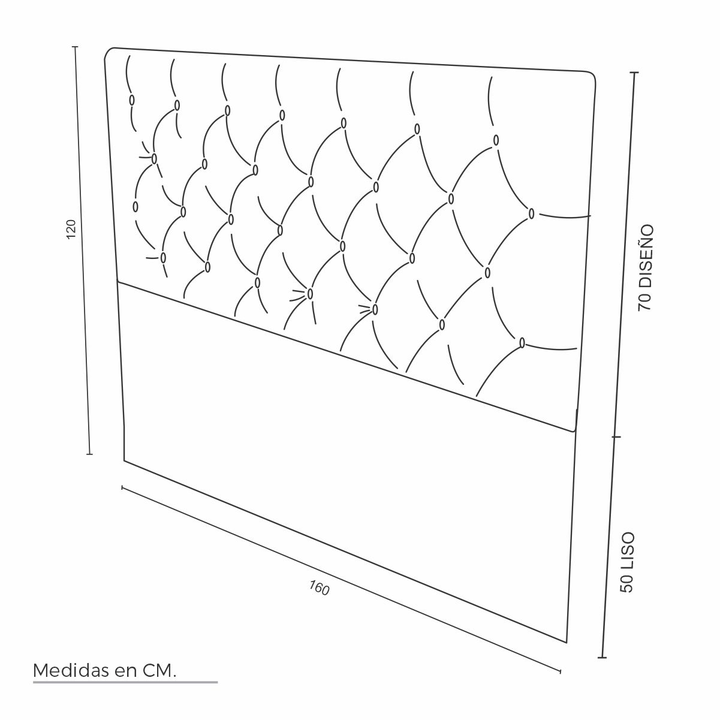 Respaldo de cama queen (160x120 cm) modelo capitone azul