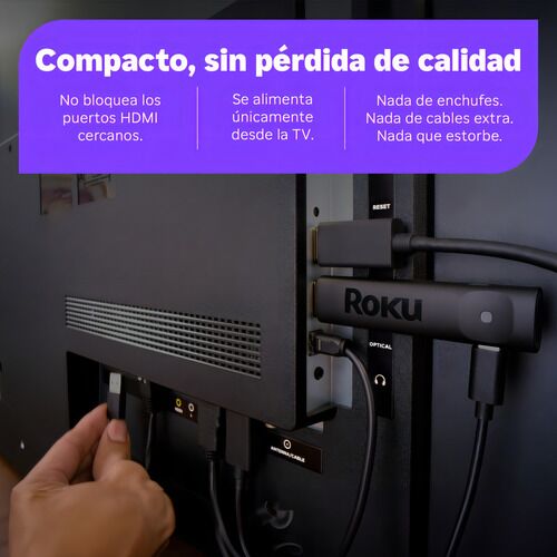 Calidad de Imagen y Sonido Resolución: Soporte completo para 4K UHD y HDR. Audio: Compatibilidad con audio Dolby a través de la conexión HDMI. Diseño y Conectividad Factor de Forma: Diseño ultra compacto que se conecta directamente al puerto HDMI, quedando oculto tras el televisor. Wi-Fi® de Doble B...