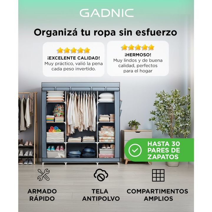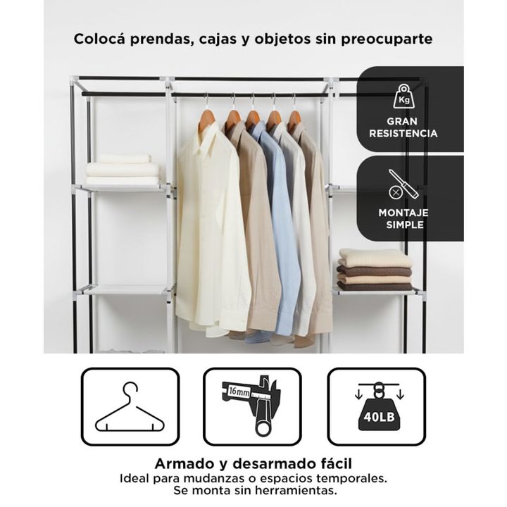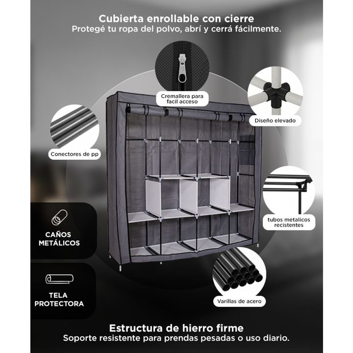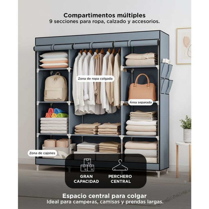 Presentamos nuestro versátil y práctico Armario Desmontable, la solución perfecta para organizar tu ropa y zapatos con facilidad. Fabricado con una combinación de tela de alta calidad y un resistente marco de hierro, este armario ofrece durabilidad y funcionalidad. Con su fácil montaje, puedes confi...