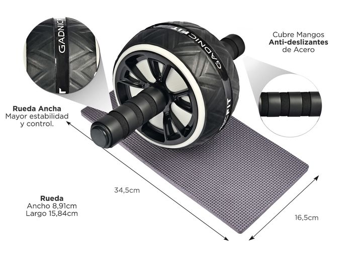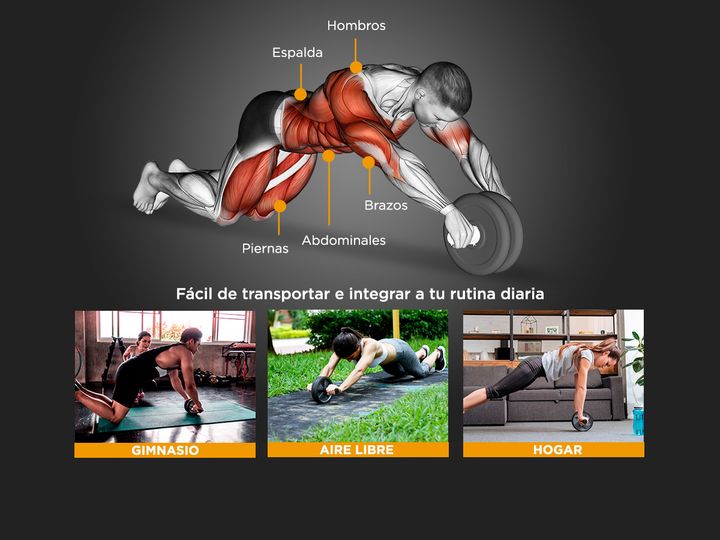 Rueda de abdominales de gran calidad, para uso intensivo, producto diseñado con materiales industriales para mayor seguridad y durabilidad. La rueda de abdominales se caracteriza por su enfoque directo en la sección media del tronco fortaleciendo y desarrollando la musculatura abdominal y de serrato...