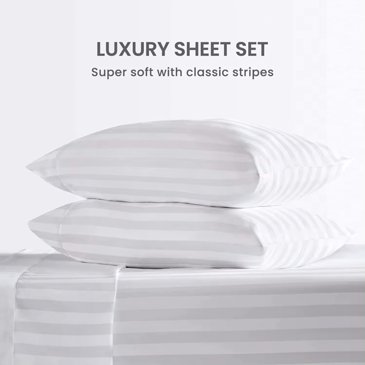 JUEGO DE SABANAS 2 PLAZAS Y MEDIA PREMIUM 4 PIEZAS SUPER SUAVE LISA DOBBY RAYADO