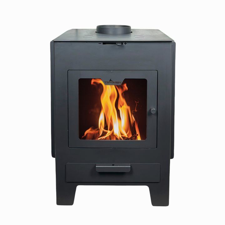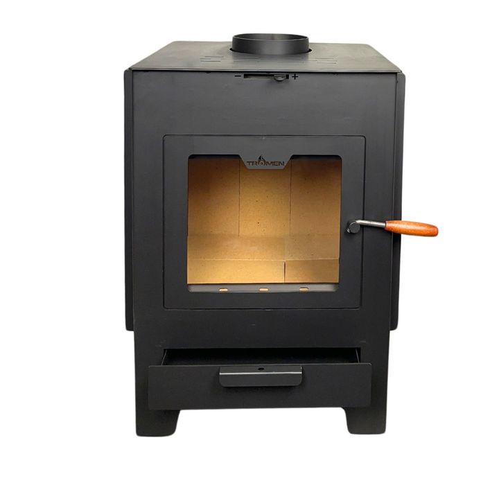 Caracteristicas. Visor de vidrio. Abertura con manija. Ladrillos en piso y laterales. Entrada de aire regulable. Cenicero. Salida de 6. Ambiente a climatizar hasta 90 m. Potencia 11000 kcal/h. Medidas. Alto 695 cm. Ancho 485 cm. Profundidad 467 cm. Peso 75 kg.