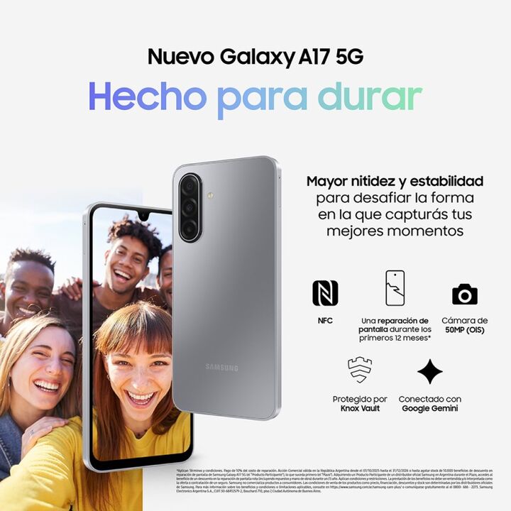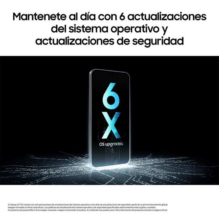 SAMSUNG A17 SM-A176B 5G 256GB NG -Pantalla 169,1 mm (rect¦¡ngulo completode 6,7) / 164,5 mm (esquinas redondeadas de 6,5), 1080 x 2340 (FHD+), Super AMOLED, 90 Hz -Procesador Octa Core 2.4GHz,2GHz -OS Android -Memoria RAM 8GB -Memoria interna 256GB. Expandible con Micro SD hasta 2TB -C¦¡mara Trasera...
