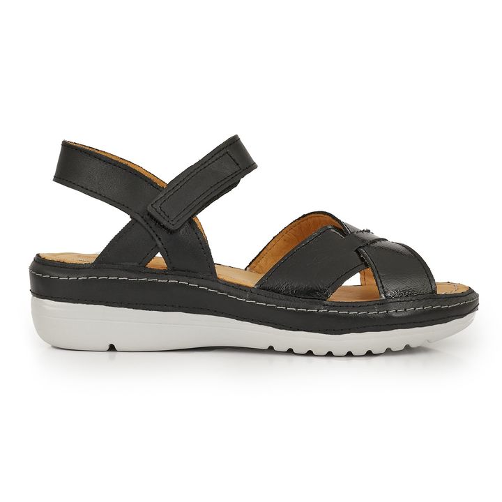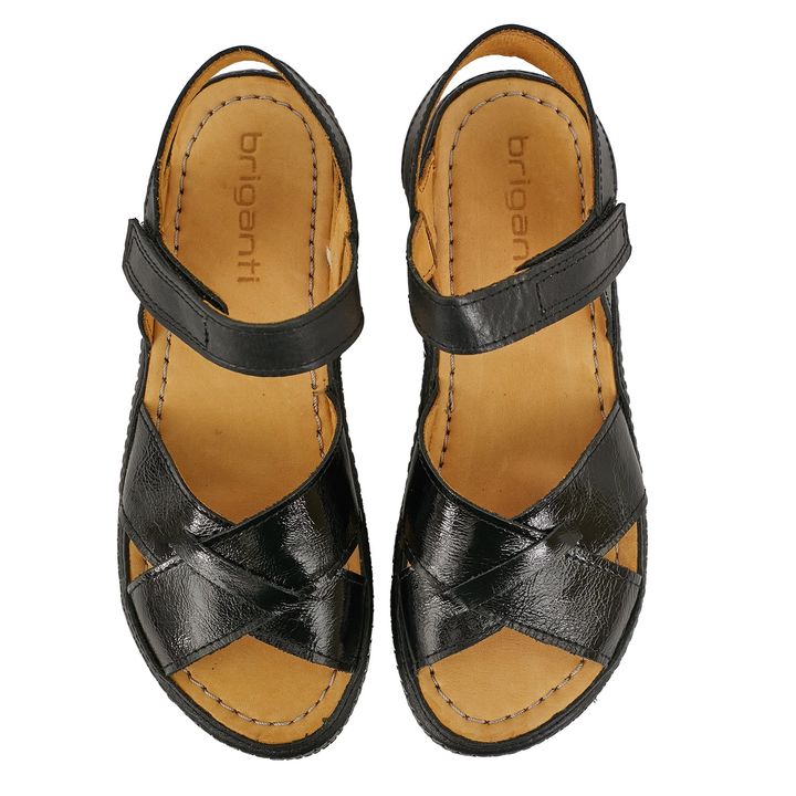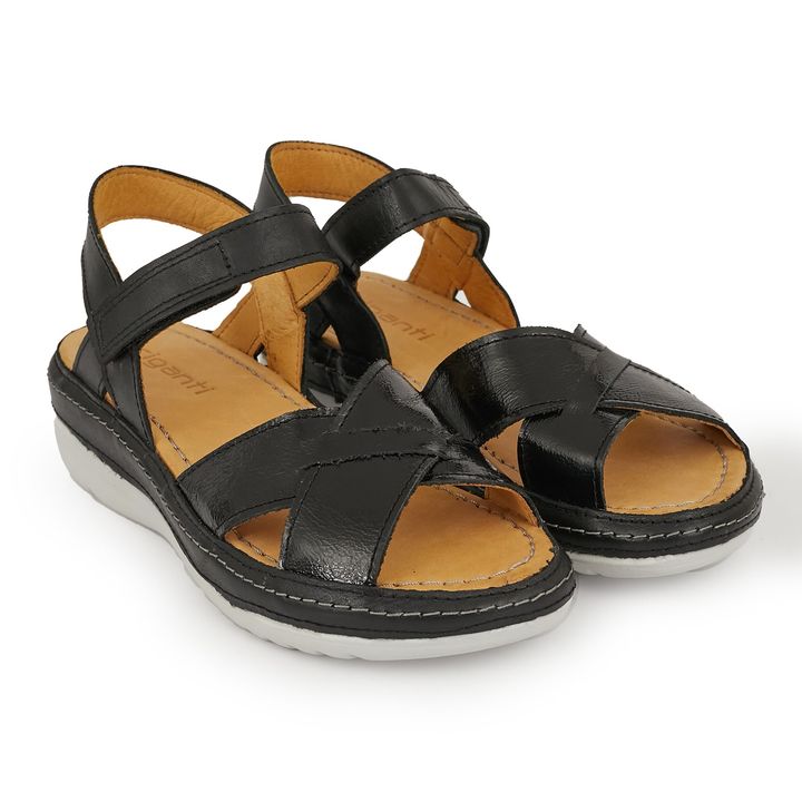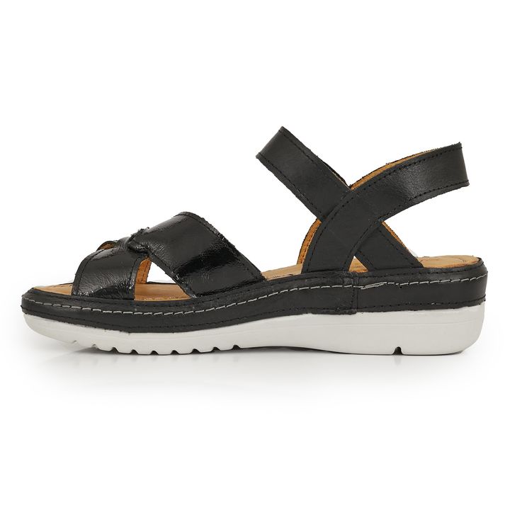 Sentí la comodidad en cada paso que des con las Sandalias Bagon. Confeccionada en cuero y charol premium, este modelo incluye una plantilla acolchada y cierre con velcro para facilitarte el calce y brindarte bienestar en tu día a día. ¡Perfectas para usar todo el tiempo! - Base: Goma - Material Inte...
