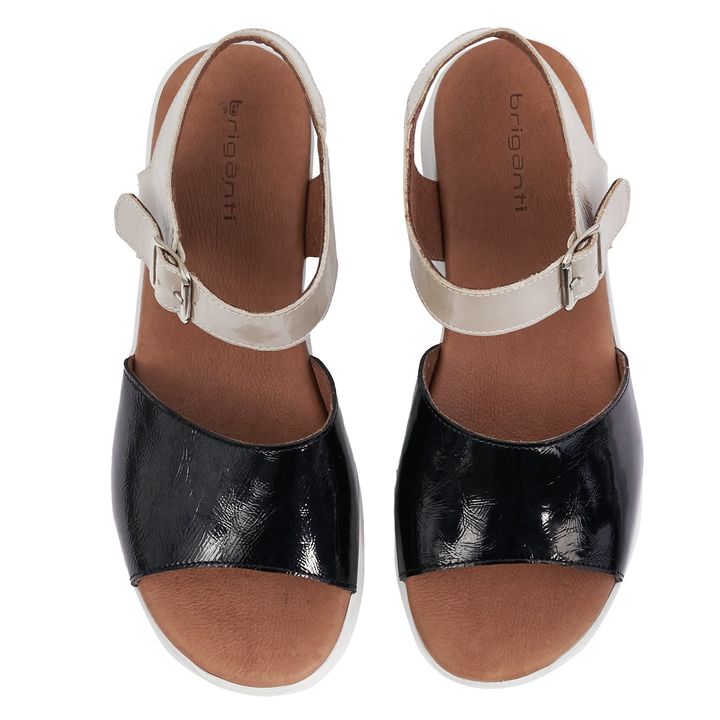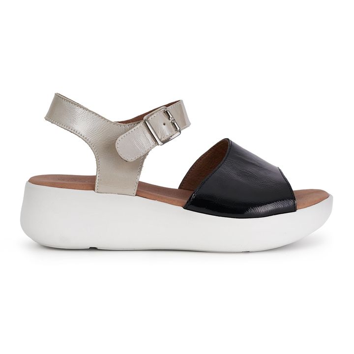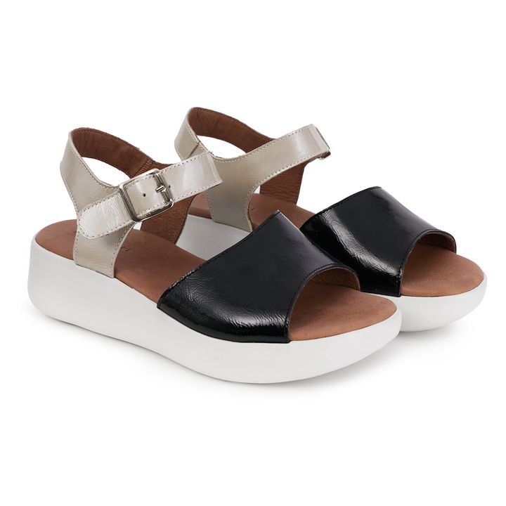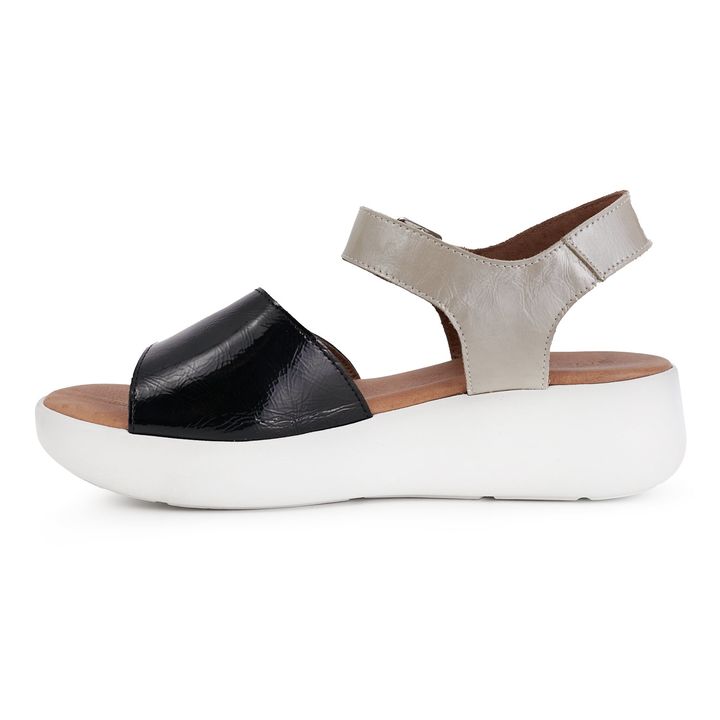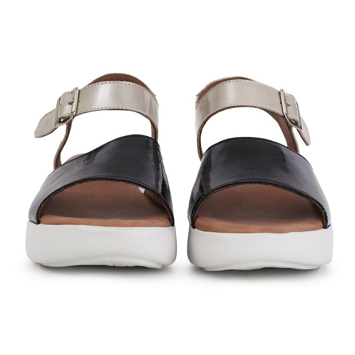Sentite cómoda y canchera con Barein. Una sandalia que logra desviarse de lo clásico combinando cuero con charol y que te mantendrá cómoda gracias a su plantilla suave y su base de goma ligera. Podés combinarla con distintos estilos para crear un look atrevido con detalles únicos. - Base: Goma - M...