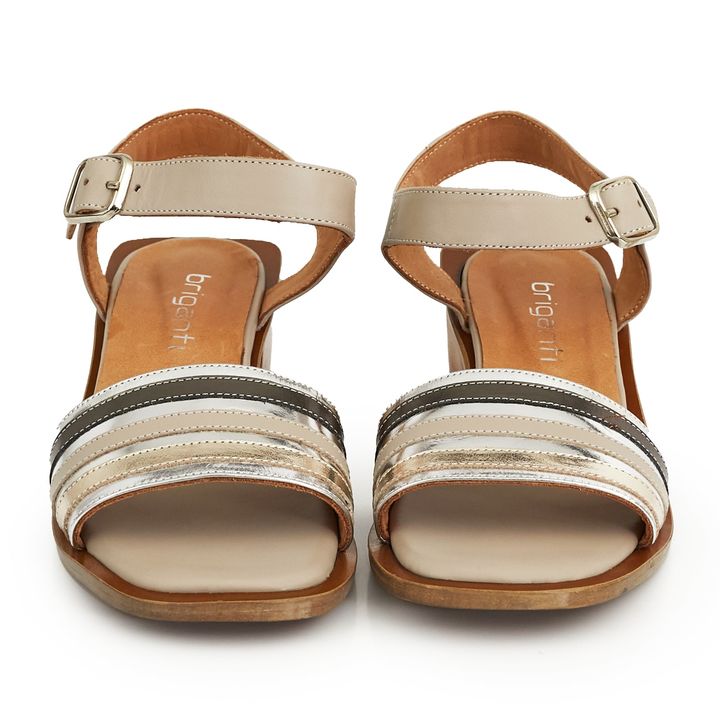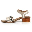 Sandalias de mujer fabricadas con cuero de primera calidad. Disfruta del verano con estilo con un par de estas sandalias con hebilla y correa. Sobre un tacón de bloque bajo, el diseño de cuero suela se detalla con franjas de color para acompañar tu estilo. Combinalo con tu vestido favorito, y obtené...